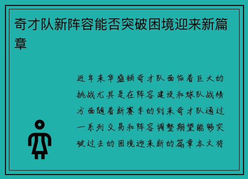 奇才队新阵容能否突破困境迎来新篇章